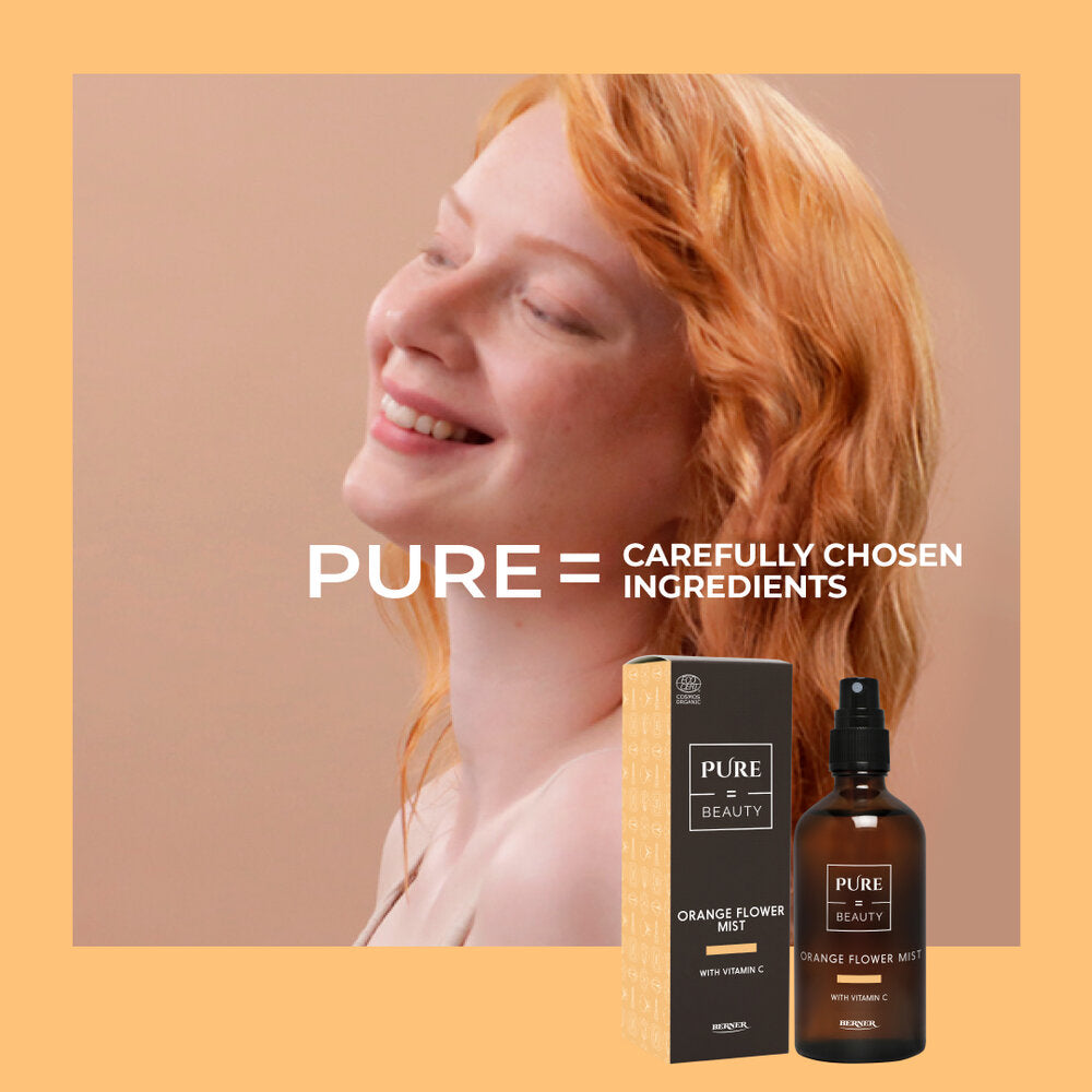 Pure=Beauty products are vegan, Ecocert Cosmos – certified natural cosmetics, made in